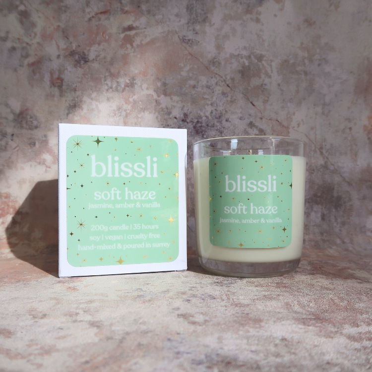 hand-poured in small batches with clean-burning soy wax, soft haze brings a quiet kind of comfort - like background music for your thoughts.